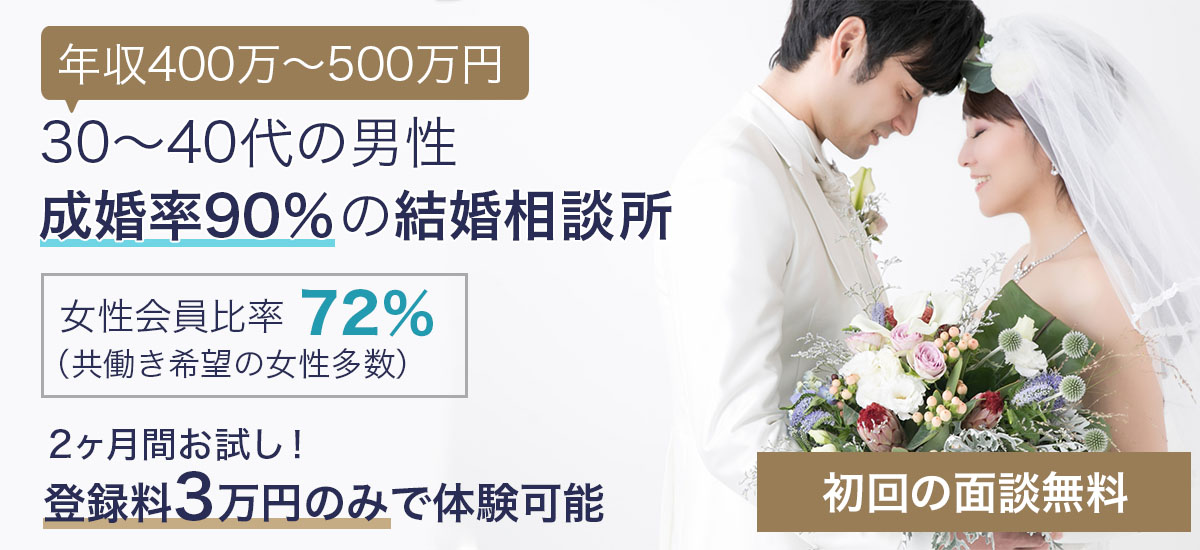結婚相談所というと、年収800万円以上や、上場企業にお勤めでないと成婚は難しいのではないかというお声をよく耳にします。業界他社では、そのようなお客様の実績を多くお持ちの結婚相談所もありますが、エルアージュは、一般企業にお勤めの年収400万円~の男性の成婚サポートを得意としております